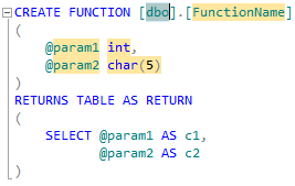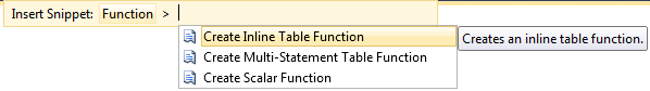 SSMS Denali - Create Function Snippet